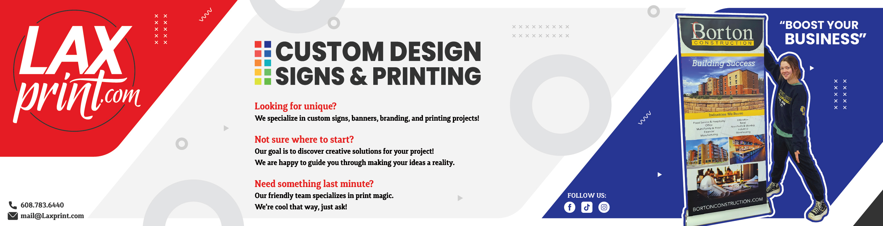Please reach out to us via email (Mail@laxprint.com) for custom sizing, material, and quantities.
